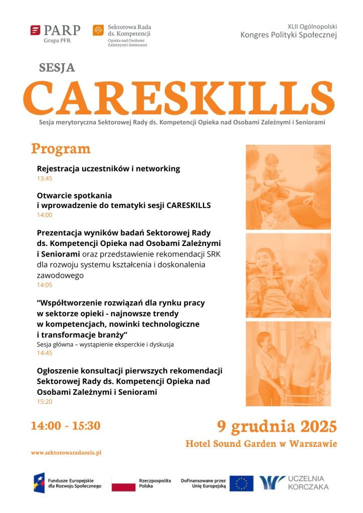 Sesja CARESKILLS odbędzie się w trakcie XLII Ogólnopolskiego Kongresu Polityki Społecznej, 9 grudnia 2025 r. w godz. 14:00–15:30 w Hotelu Sound Garden w Warszawie.